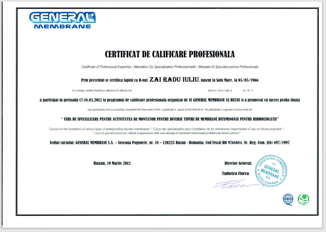 - LUCRĂRI realizate de către personal calificat în hidroizolații bituminoase