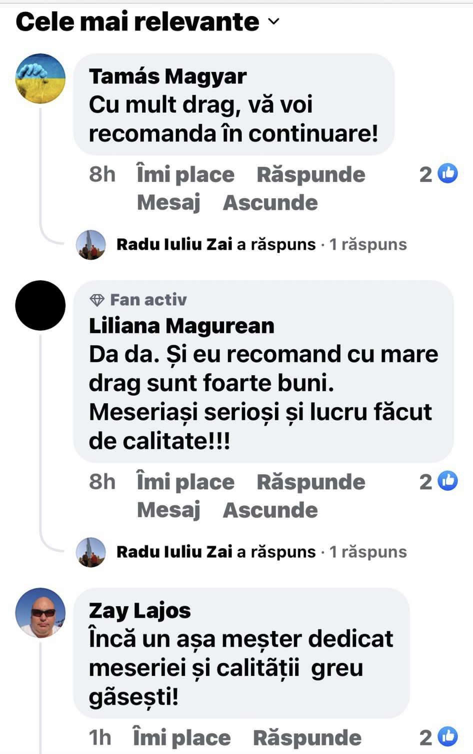 - GARANȚIE, reală și efectivă extinsă pentru manoperă și materialele folosite